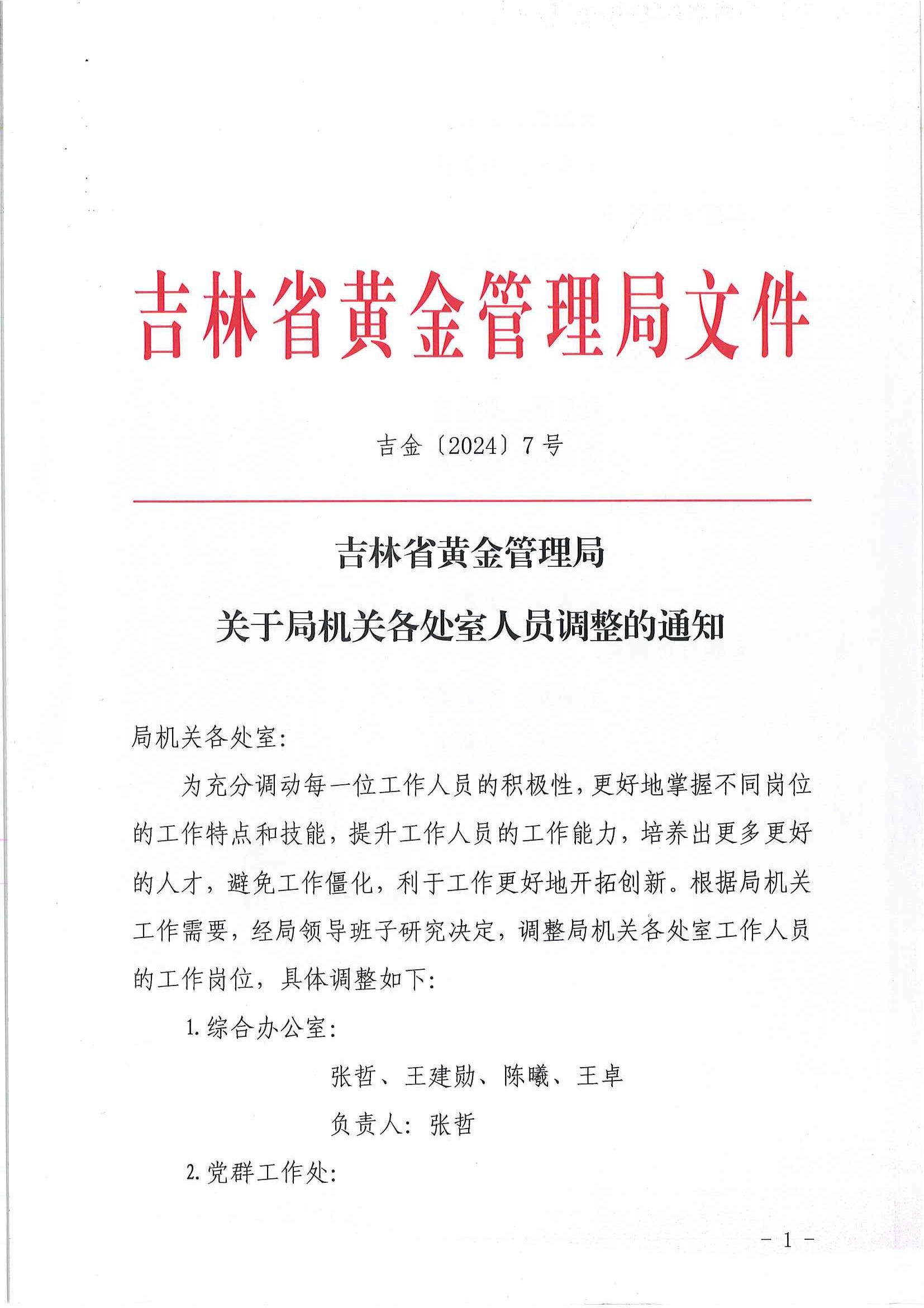 关于局机关各处室人员调整的通知